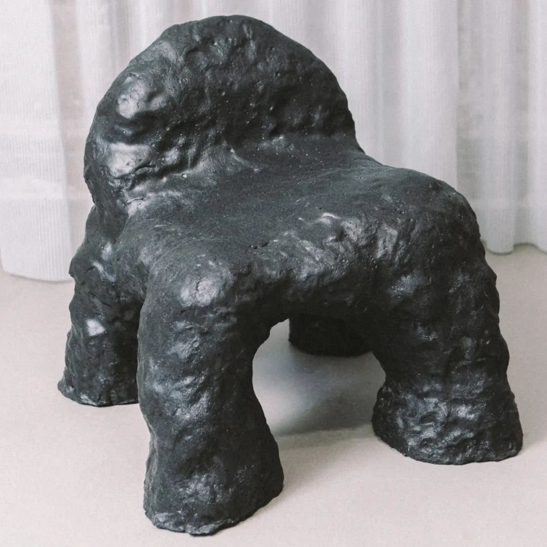從遠(yuǎn)處看,起伏不平的椅子表面就像一塊光滑的黑色石頭,但實(shí)際上是由設(shè)計(jì)師設(shè)計(jì)的一種粘糊狀,可生物降解的木炭泡沫復(fù)合材料制成的。