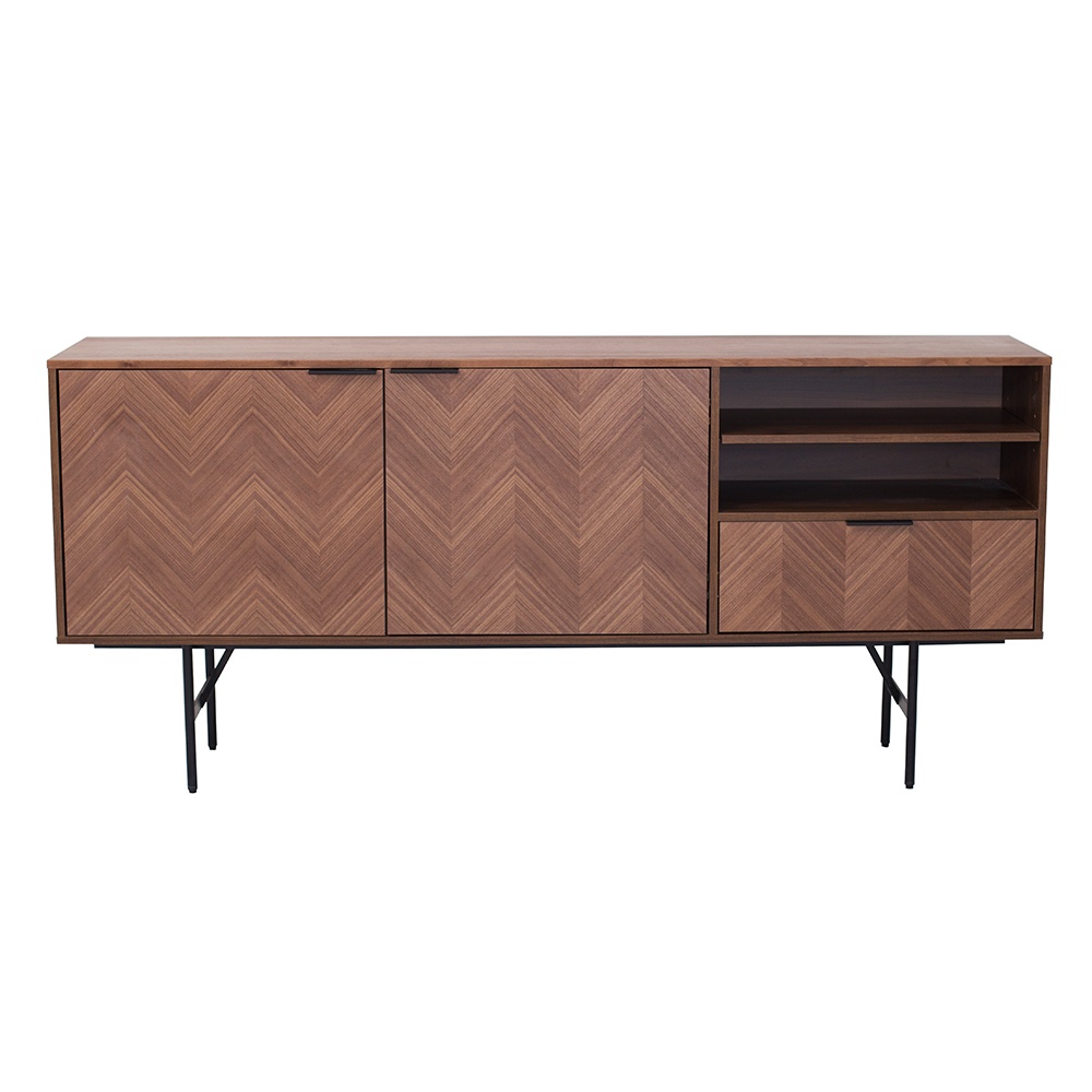 CB-139 胡桃木主體+胡桃木拼花門板、抽面+黑啞光金工件