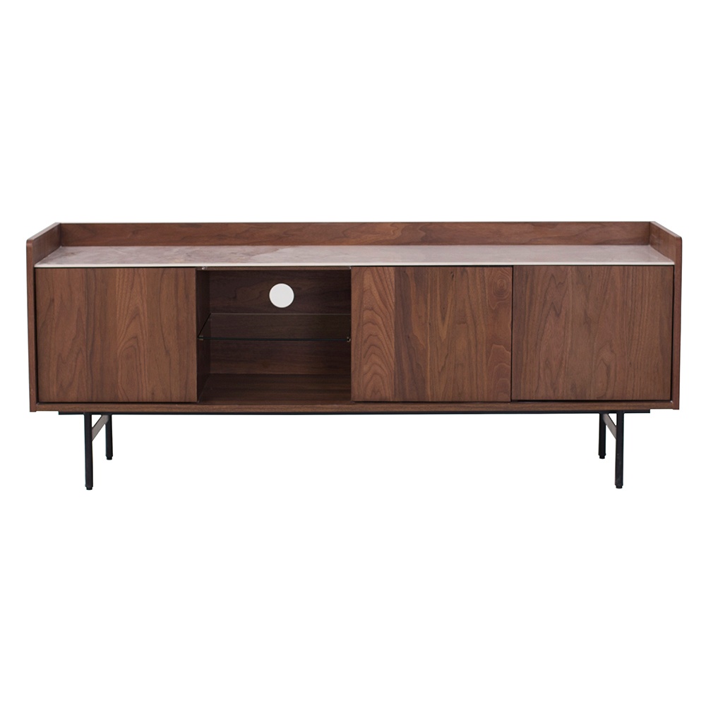 CB-181 胡桃木主體+意大利米灰陶瓷面板+透明鋼化玻璃+黑啞光金工件