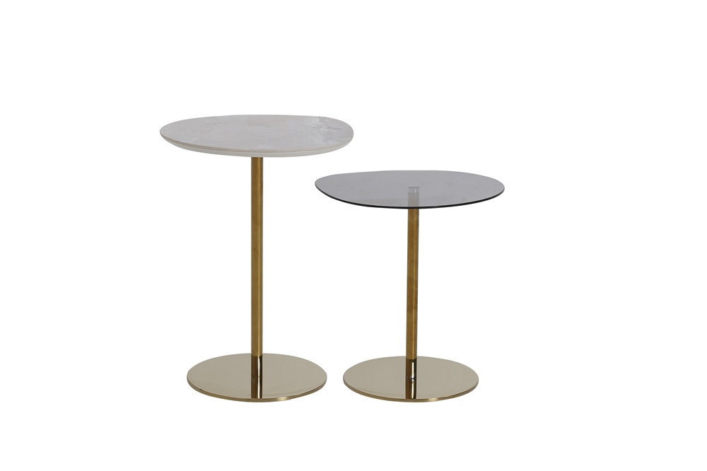 意大利米灰陶瓷面板+煙灰色鋼化玻璃+亮銅色金工件