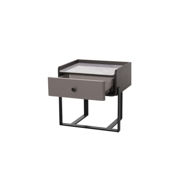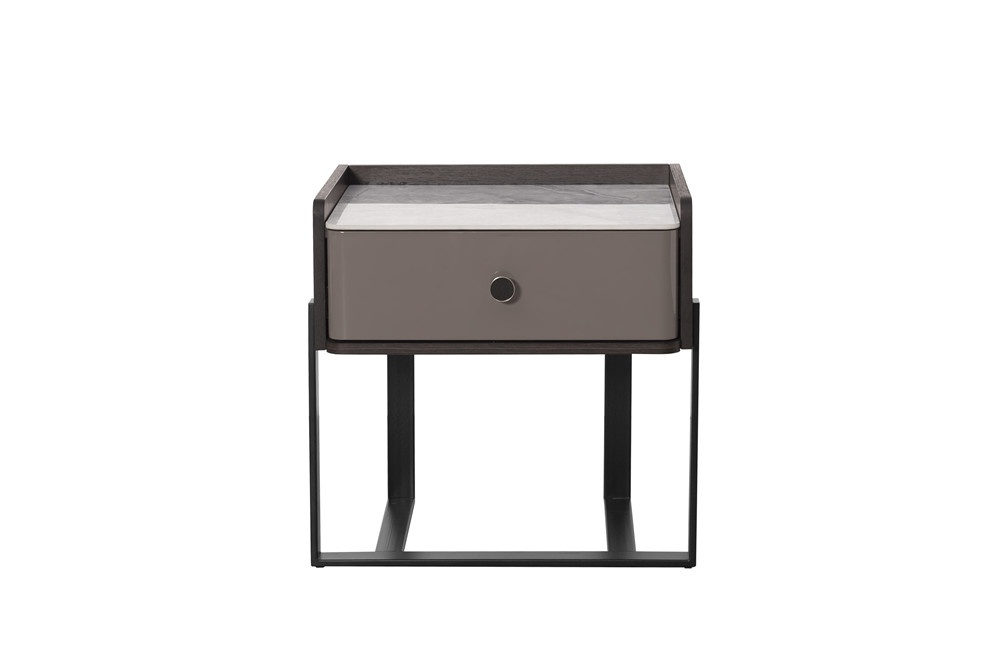 意大利米灰陶瓷面板+煙熏木皮主體+石色亮光抽面板+黑啞光金工件