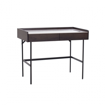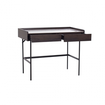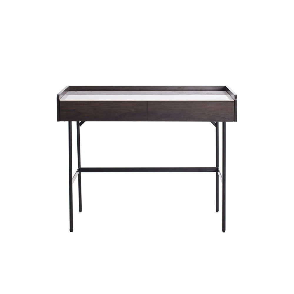 DT-083B-意大利米灰陶瓷面板+煙熏色木紋三聚氰胺板主體+黑啞光金工件